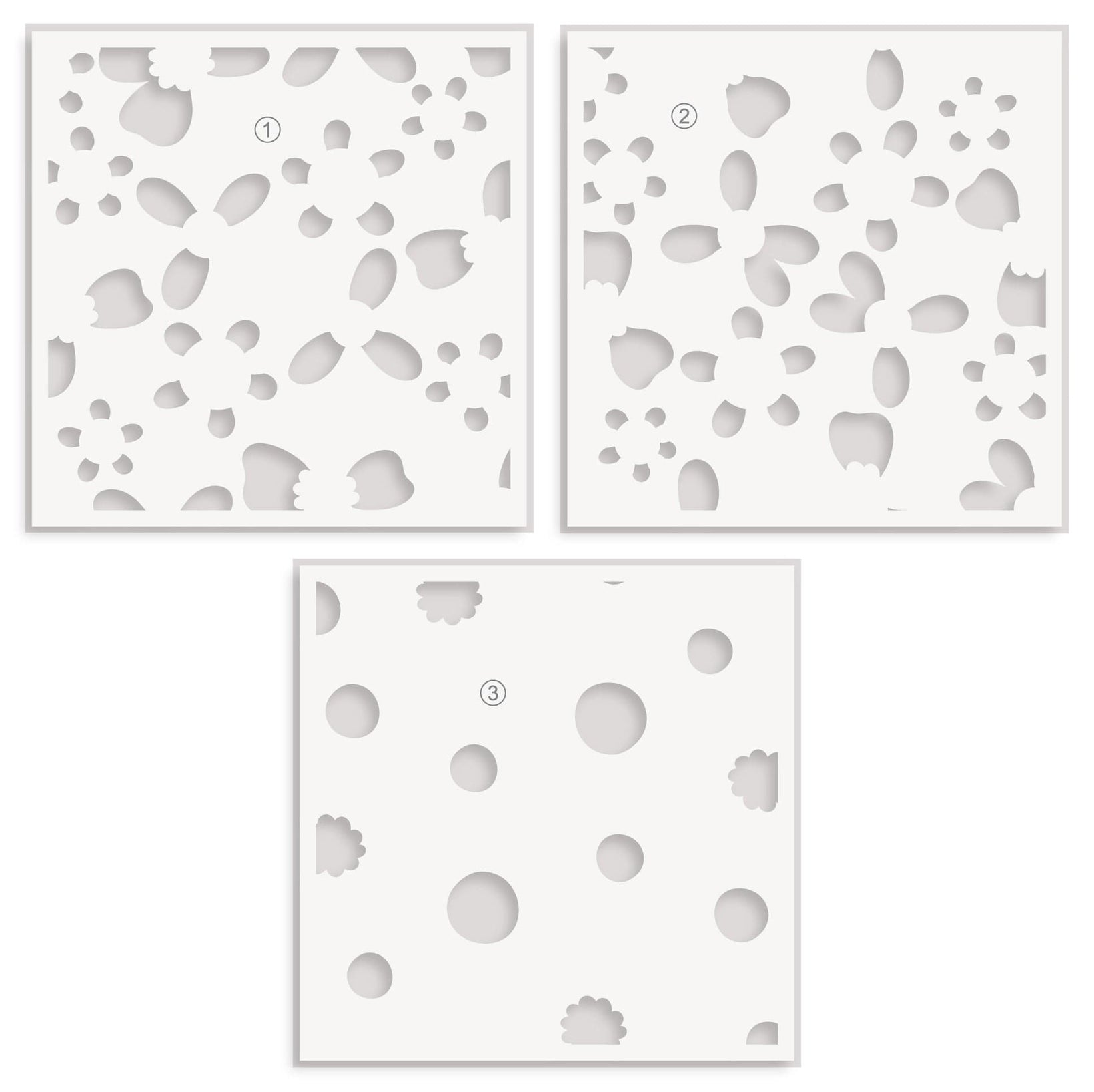 Travel back in time with the Sixties Sunshine Embossing Folder and its coordinating simple coloring stencil set! Easily color in the Sixties Sunshine Embossing Folder, inspired by timeless vintage florals, with this 3-in-1 Simple Coloring Stencil Set! The first two stencils can help you color in the alternating petals of each flower and the third stencil colors in the stigmas of the flowers.