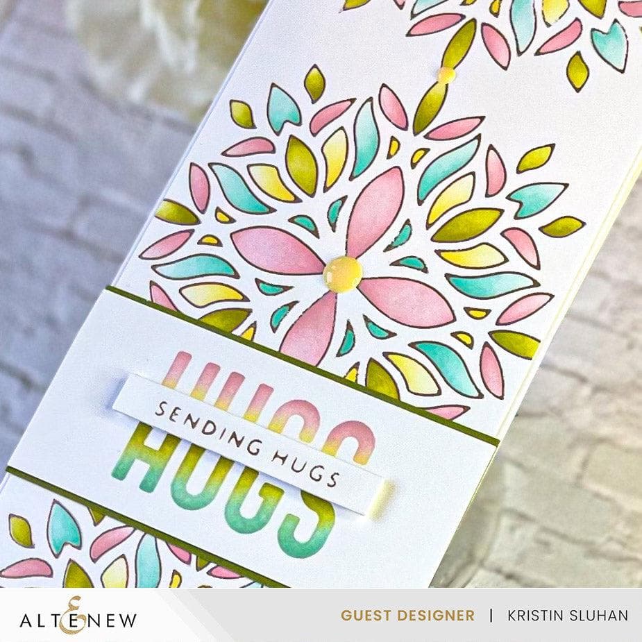 The coordinating stencil set helps you to create a large folksy mandala with bold symmetrical shapes. Create an effortless background, or use as a focal point for your next project. Use the stencils on their own or color in the foiled image from the coordinating hot foil plate!