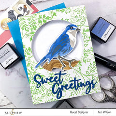 Robins have been a symbol of good luck, happiness, rebirth, and sometimes even as a messenger for lost loved ones. This unique layering stencil set features a beautiful layered robin on a branch and is a perfect focal point alongside the Sweet Greetings Hot Foil Plate.