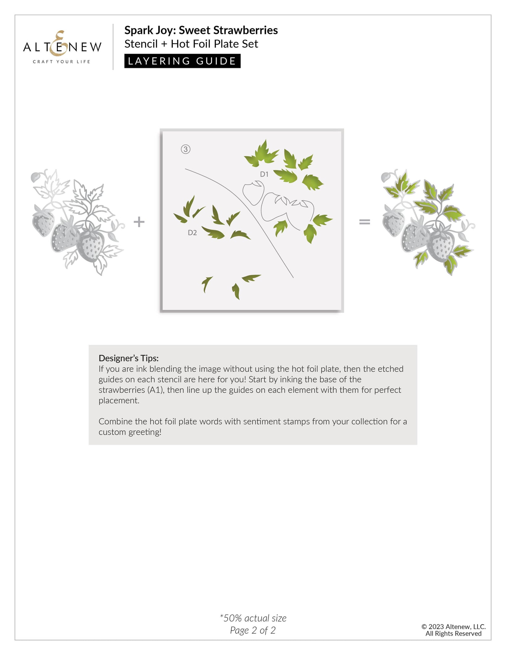 Download: Spark Joy: Sweet Strawberries Stencil & Hot Foil Plate Layering Guide 1 ▪ Spark Joy: Sweet Strawberries Stencil & Hot Foil Plate Layering Guide 2