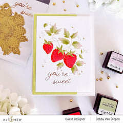 Featuring a whimsical branch of strawberries and leaves, this hot foil plate can be used with or without the coordinating stencil set. We have also included the words "you're" and "sweet" so you can easily add a suitable sentiment!