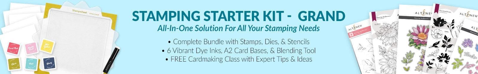Introducing Altenew's Stamping Starter Kit - Grand - Your Gateway to Creative Bliss! This thoughtfully curated large stamping kit is a must-have for beginner stampers and aspiring card makers looking to kickstart their creative journey.