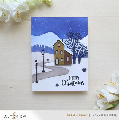 I love how this set is designed because it has so many different options to add to the scene! You can add pine trees (individual ones or a line of trees or both!), winter trees without any leaves, and even a streetlamp! The starry sky stencil is great with Antique Silver Shimmer Relief Paste, too! And this scene can be adjusted for any season based on the colors you use. Great stencil set!