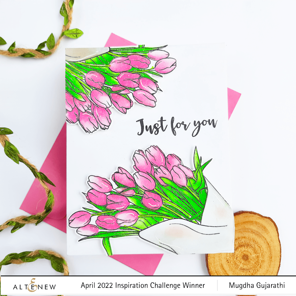 This set features an arrangement of tulips in a vase and a bouquet of tulips wrapped in floral paper wrap. Tulips have been well-loved for centuries and symbolize deep and perfect love. Capture that love by stamping the floral design onto your next paper crafting project. Don't forget the motivational sentiments encouraging you to live in the moment.