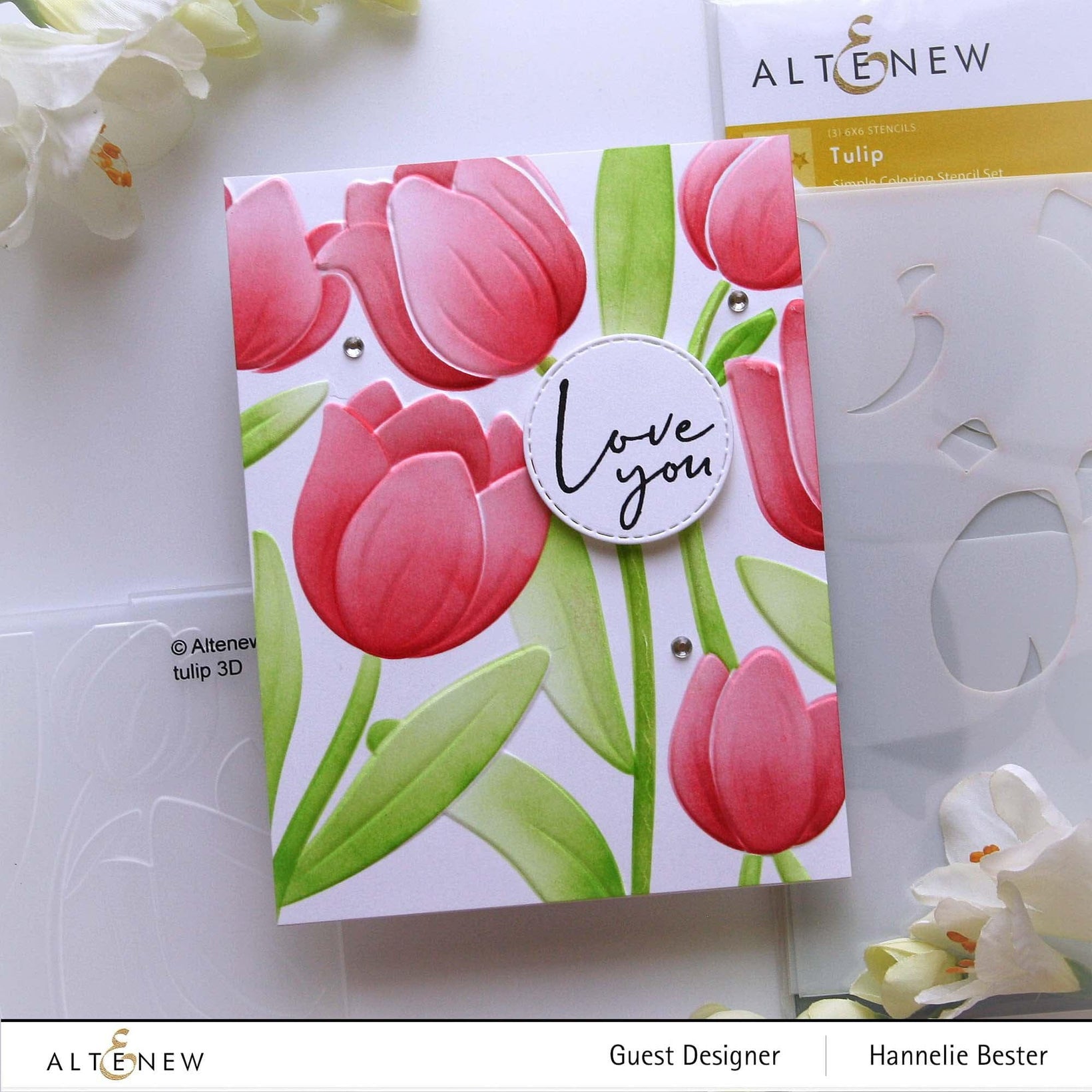 I was given a challenge. Make a masculine card using flowers. So these two cards were produced using this beautiful stencil. Crimson and Mountain Pine Altenew Crisp ink was used as the base for these tulips and their greenery. I let them dry and then added Maple Yellow on the flowers, stems, and leaves to give depth. I followed up with a small blending brush with just a bit more red on a few petals for a bit more dimension. Everything was then outlined in gold pen. To add more masculine strength to the card, it was mounted on a brownish-green cardstock and the sentiment was cut from the same material. On one card I did not color the bottom Tulip, but filled the space with green using the center of that tulip only as it got in the way of this particular sentiment. I really enjoyed working with this stencil and have many more ideas for it.